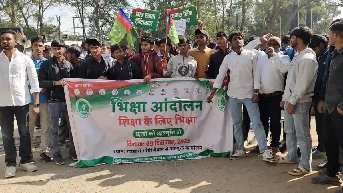 हजारीबाग: जिले के लगभग 67 हजार 300 छात्रों को छात्रवृत्ति योजना का लाभ नहीं मिल पा रहा है. इसे देखते हुए छात्र अब आंदोलन की राह पर हैं. आजसू पार्टी ने हजारीबाग से भिक्षा आंदोलन की शुरुआत की है. छात्रों ने सड़क पर उतरकर अपने हक के लिए आवाज बुलंद करते हुए गांधी मैदान से समाहरणालय तक पैदल मार्च कर सरकार के खिलाफ आवाज बुलंद की है.