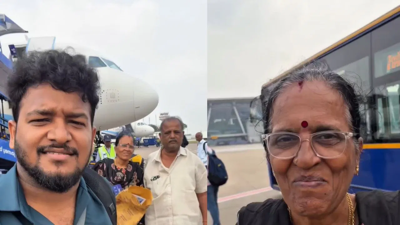 दरअसल, इस वीडियो में एक बंदा अपने माता-पिता को पहली बार हवाई जहाज का सफर कराता नजर आता है और उसके बाद उनका जो रिएक्शन होता है, वो देखने लायक होता है. वीडियो में आप देख सकते हैं कि बंदा कैसे अपने माता-पिता को उनकी पहली हवाई यात्रा पर ले जाते हुए नजर आता है. शुरुआत में बंदा अपने पैरेंट्स के साथ रनवे पर खड़ा होता है, जबकि उसके पीछे इंडिगो का विमान इंतजार कर रहा होता है. इस दौरान मां के चेहरे की खुशी देखने लायक होती है. बाद में वो उन्हें लेकर फ्लाइट के अंदर बैठ जाता है और अंदर ही अंदर बहुत गर्व महसूस करता है.