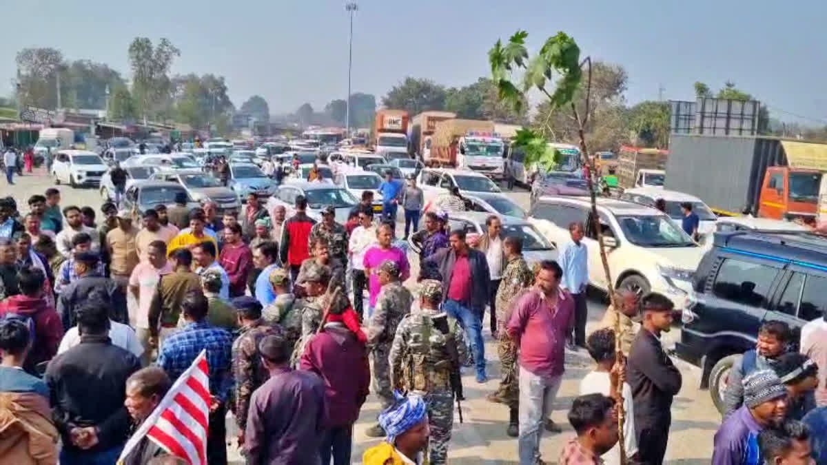 रांची: आदिवासी नेता सोमा मुंडा की हत्या के खिलाफ आदिवासी संगठनों के झारखंड बंद का मिलाजुला असर देखने को मिला है. खूंटी और चाईबासा में सुबह होते ही बंद समर्थक सड़कों पर उतर गये और ट्रैफिक सिस्टम को ठप कर दिया. वहीं दिन चढ़ते ही कई अन्य जिलों में भी बंद समर्थक सड़कों पर आ गये. इसकी वजह से आम यात्रियों को भारी परेशानी झेलनी पड़ी. सबसे ज्यादा खराब स्थिति जमशेदपुर-रांची एनएच पर दिखी. इसकी वजह से टोल प्लाजा के दोनों ओर एनएच पर हजारों गाड़ियां जाम में फंस गई. एनएच पर जाम का सिलसिला करीब 5 घंटे तक चला. सुबह करीब 11 बजे प्रदर्शनकारी टोल प्लाजा पहुंचे और प्रदर्शन कर लगे. इसकी वजह से जाम लग गया.