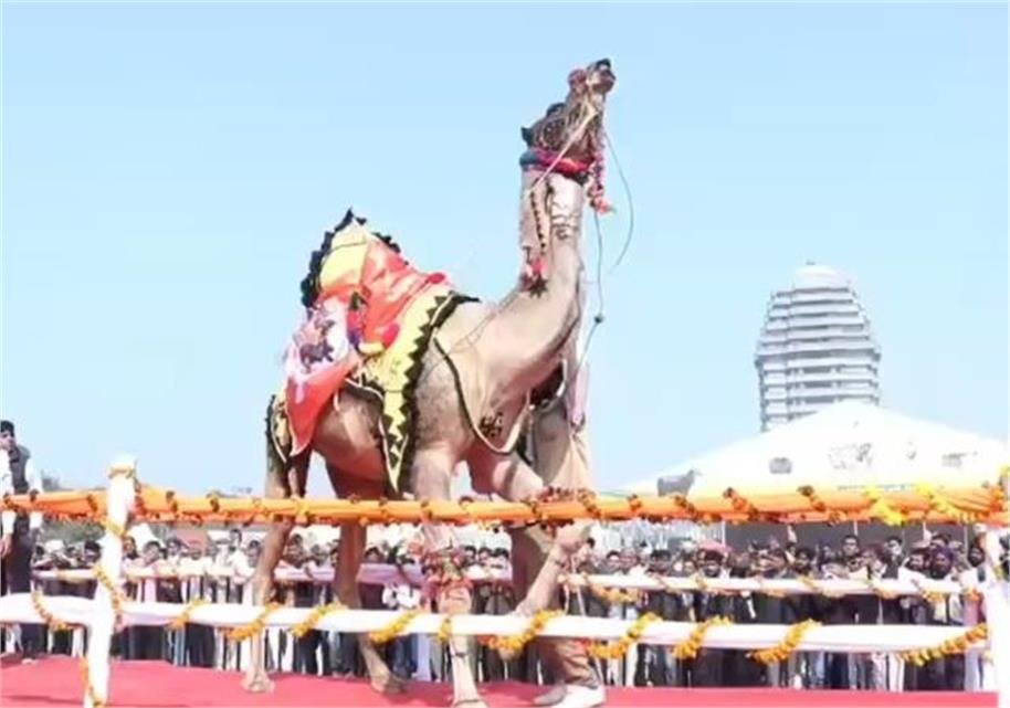 कुरुक्षेत्र : कुरुक्षेत्र के मेला ग्राउंड में तीन दिवसीय राज्य स्तरीय पशु मेला का आयोजन किया जा रहा है। इस मेले में हरियाणा के अलग-अलग राज्यों से पशुपालक अलग-अलग कैटेगरी में पशु लेकर पहुंचे हैं। वहीं हरियाणा राजस्थान की सीमा से लगते जिले महेंद्रगढ़ से पशुपालक ऊंट लेकर यहां पर पहुंचे हैं। यहां पर प्रतियोगिता में भाग लेने के साथ-साथ ऊंट मेले में आए हुए लोगों का मनोरंजन करने के लिए स्टेज पर कैटवॉक करके लोगों को खूब मनोरंजन कर रहे हैं। ऊंट की ऐसी कैटवॉक शायद ही पहले आपने देखी होगी, जहां पर मेले के अंदर गानों पर ऊंट थिरकते हुए नजर आए।