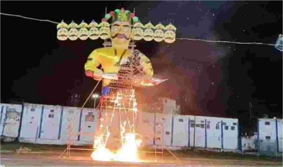 नगर निगम की क्रेन आई और पेट्रोल डालकर रावण के सिर के पीछे आग लगाई गई। हालांकि इस बार केवल बीच का हिस्सा ही जला। जनता और मंच पर बैठे नेताओं के चेहरे लटक गए।