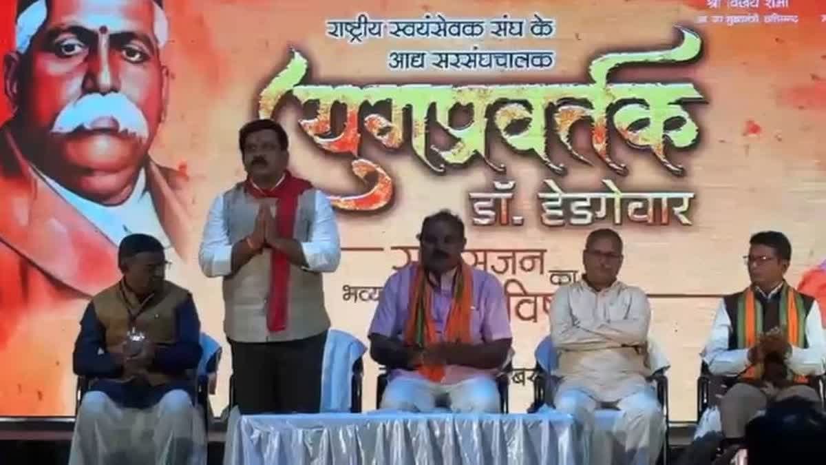 संघ शताब्दी वर्ष पर कार्यक्रम: कार्यक्रम के दौरान आरएसएस के प्रांत प्रमुख, विभिन्न जिलों के पदाधिकारी, शिक्षाविद्, सामाजिक संगठन के सदस्य और बड़ी संख्या में स्वयंसेवक शामिल हुए. मंच पर संघ के संस्थापक डॉ. केशव बलिराम हेडगेवार के जीवन, संघर्ष और संघ की स्थापना के उद्देश्य को नाट्य रूपांतरण के माध्यम से प्रस्तुत किया गया. कलाकारों ने मंच पर डॉ. हेडगेवार के विचारों, राष्ट्रप्रेम और संगठन निर्माण की यात्रा को जीवंत कर दिया, जिसे उपस्थित दर्शकों ने भावनात्मक रूप से अनुभव किया.